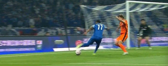 第61分钟,申花后场长传球路易斯头球摆渡马纳法门前跟上抽射被门将扑出,第二点补射打高了。↓