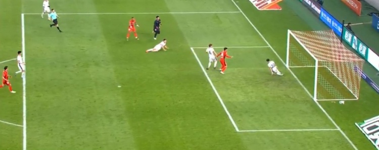 李圣龙进球越位!第73分钟,维塔尔主罚任意球开出被解围,李帅外围再远射,皮球打在李圣龙腿上折射破门,裁判吹罚越位进球无效。↓