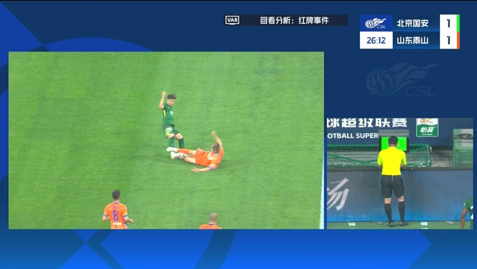 第27分钟,吴兴涵飞铲林良铭,裁判第一时间给了黄牌,但在VAR介入后最终改判,吴兴涵直红被罚下!山东泰山少打一人!↓