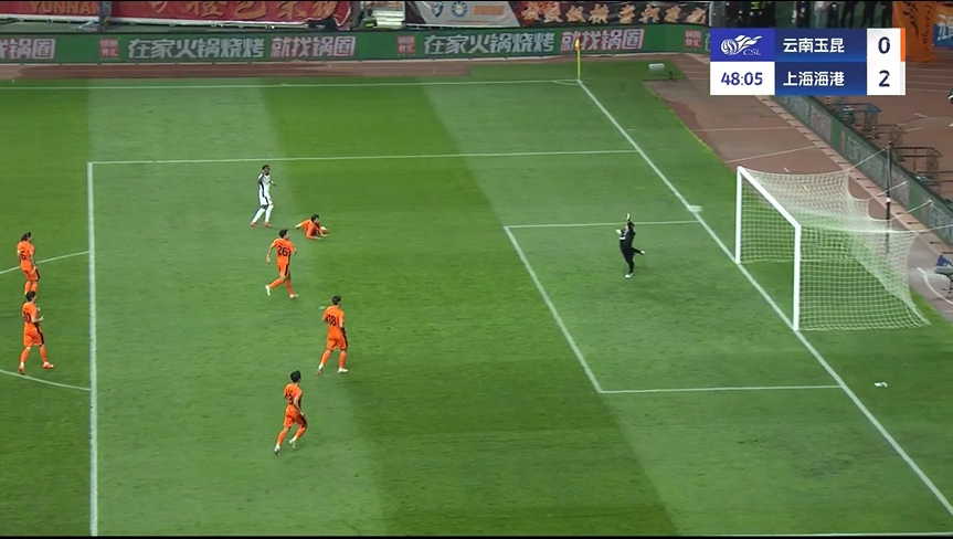 第44分钟,玉昆的角球机会,奥斯卡头球攻门顶在队友内内身上,内内转身再扫射打偏。↓