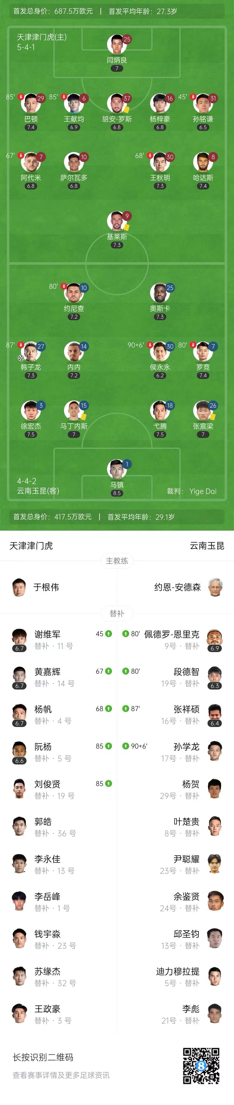 【双方比赛阵容】