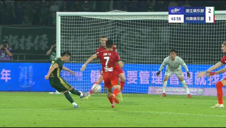 浙江反超!陶强龙5分钟双响+赛季第4球,弗兰克两助攻!第44分钟,弗兰克禁区内脚后跟做球,陶强龙跟进抽射直挂网窝死角,浙江2-1河南!↓