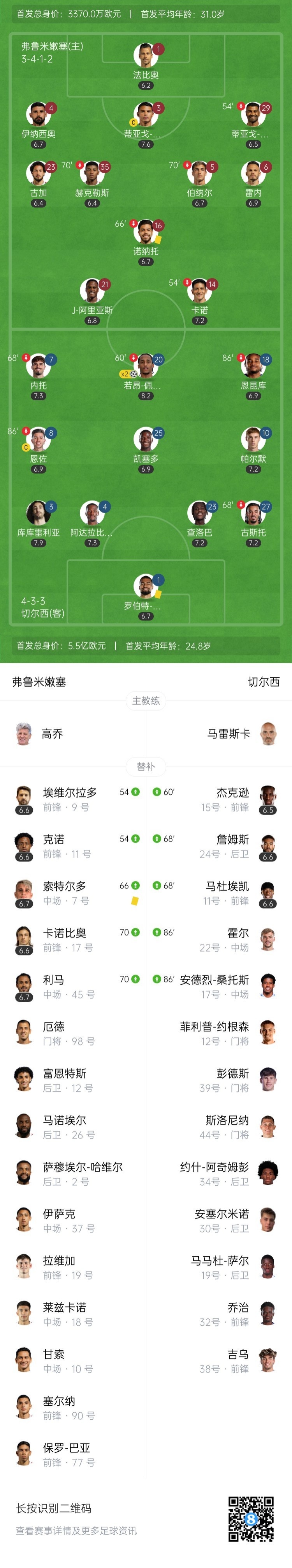 第56分钟,切尔西反击机会,恩佐中圈送出直塞,若昂-佩德罗左路得球,一路突入禁区,晃开角度后起脚爆射得手,切尔西2-0弗鲁米嫩塞。↓