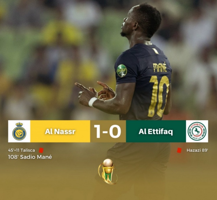 沙王冠-利雅得胜利加时1-0达曼协作 马内制胜塔利斯卡半场染红