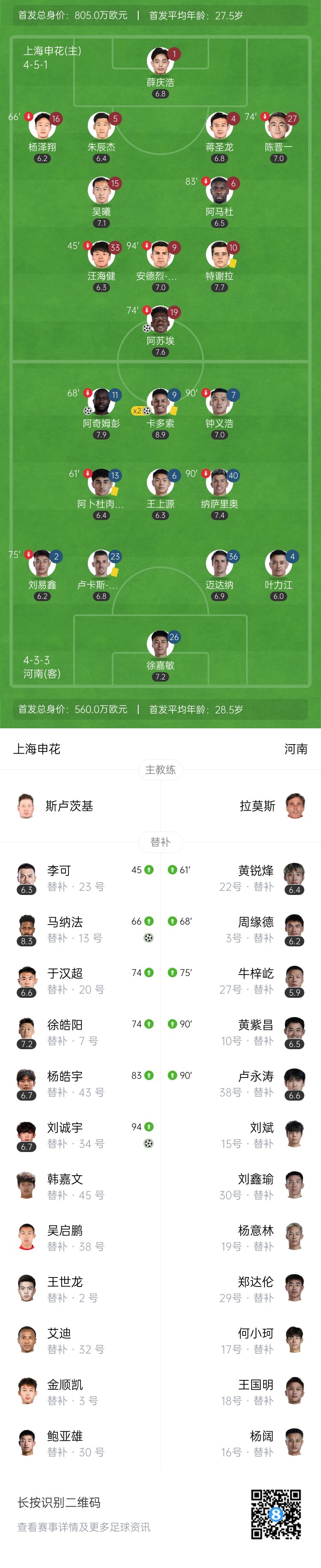 【双方首发及换人信息】