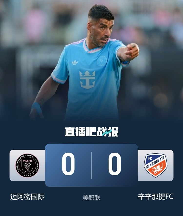 美职联-迈阿密国际0-0辛辛那提FC 苏牙造险迈阿密补时险被绝杀