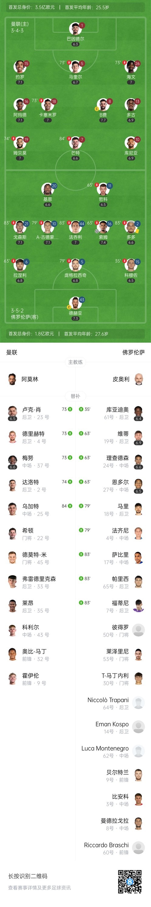 双方首发以及换人信息: