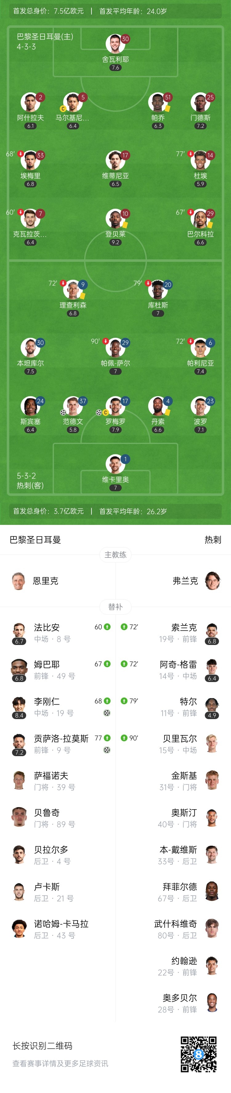 【双方首发及换人信息】