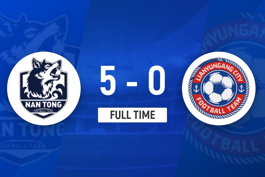 第90+2分钟,覃虹皓右路送出传中,包鼎铭门前头球轻松顶进,南通5-0连云港。↓
