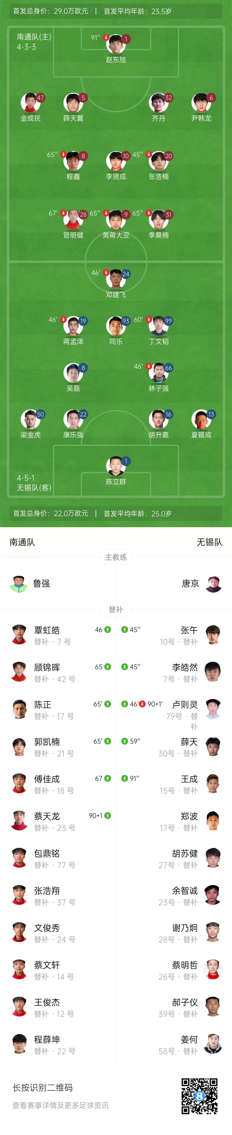 4月11日讯 北京时间4月11日晚19时40分,2026赛季苏超第1轮在宜兴市体育中心体育场展开角逐,无锡队坐镇主场迎战镇江队。上半场刘宇豪梅开二度,下半场庄荣彬扳回一城,谢志伟一条龙奔袭破门。最终无锡主场3-1战...发表于:04月11日