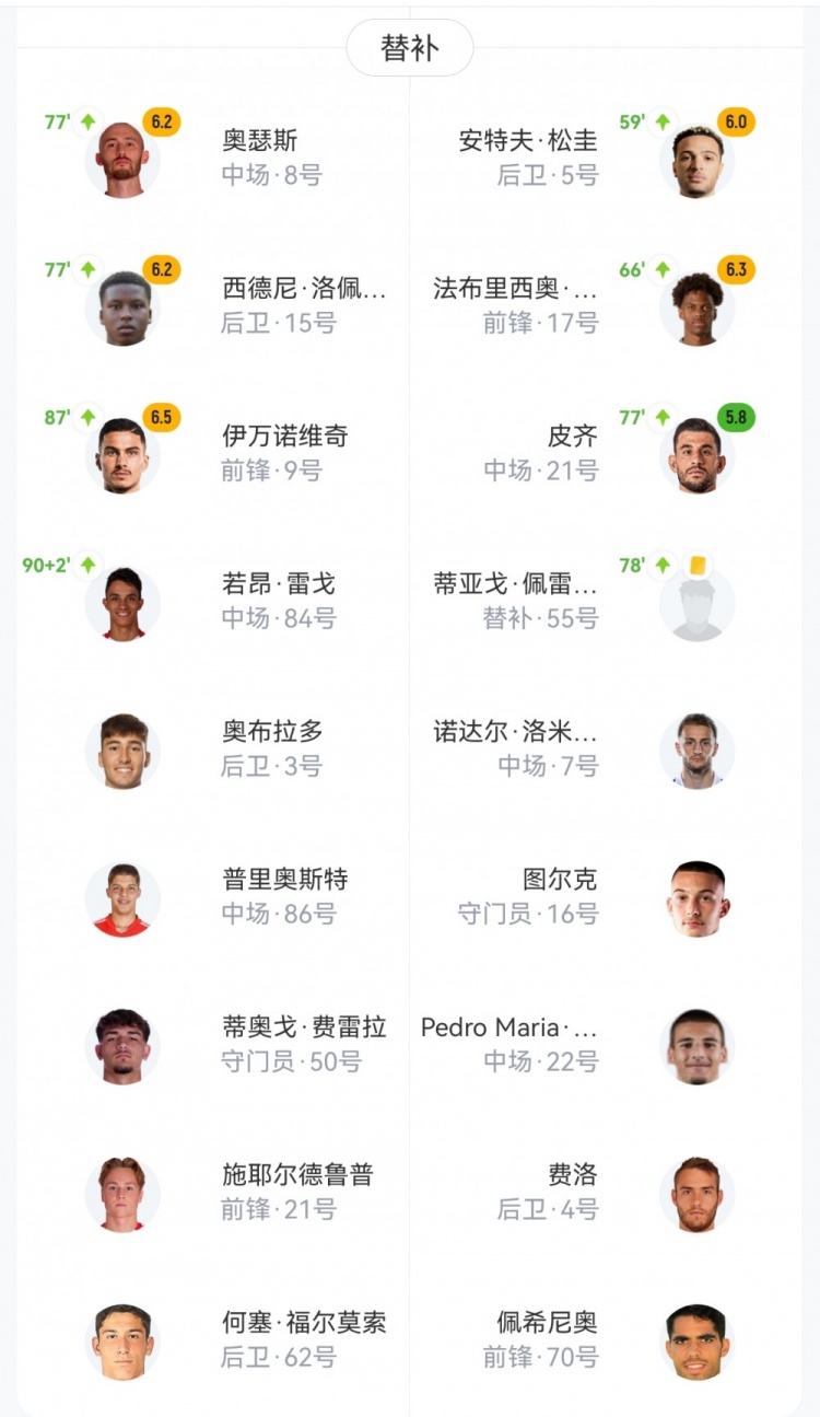 【双方首发及换人信息】