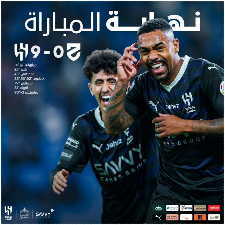 沙特联-利雅得新月9-0哈森姆7连胜4分领跑 马尔科姆戴帽米神传射