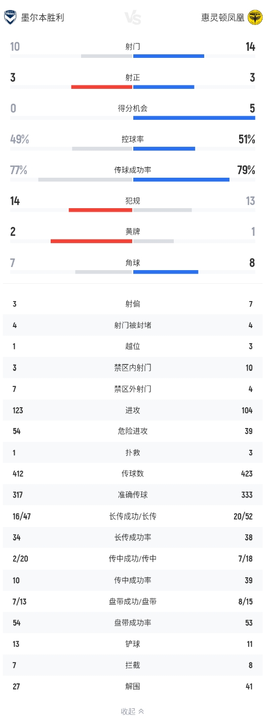 比赛第54分钟,墨尔本胜利17号韦卢皮莱推人犯规,本场的第二张黄牌!↓