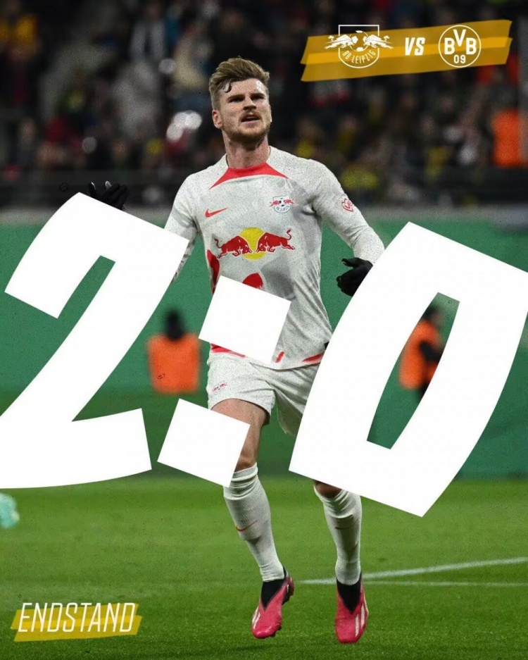 4月6日讯 北京时间4月6日凌晨2时45分,德国杯四分之一决赛,多特客场对阵莱比锡。上半场,维尔纳首开纪录。多特半场0-1落后莱比锡。下半场,奥尔班补时阶段完成破门。最终多特客场0-2不敌莱比锡,无缘进入德国杯四强。