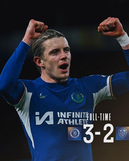 第90分钟,恩佐前场传到禁区,加拉格尔转身带一步抽射破门!切尔西3-2利兹联↓