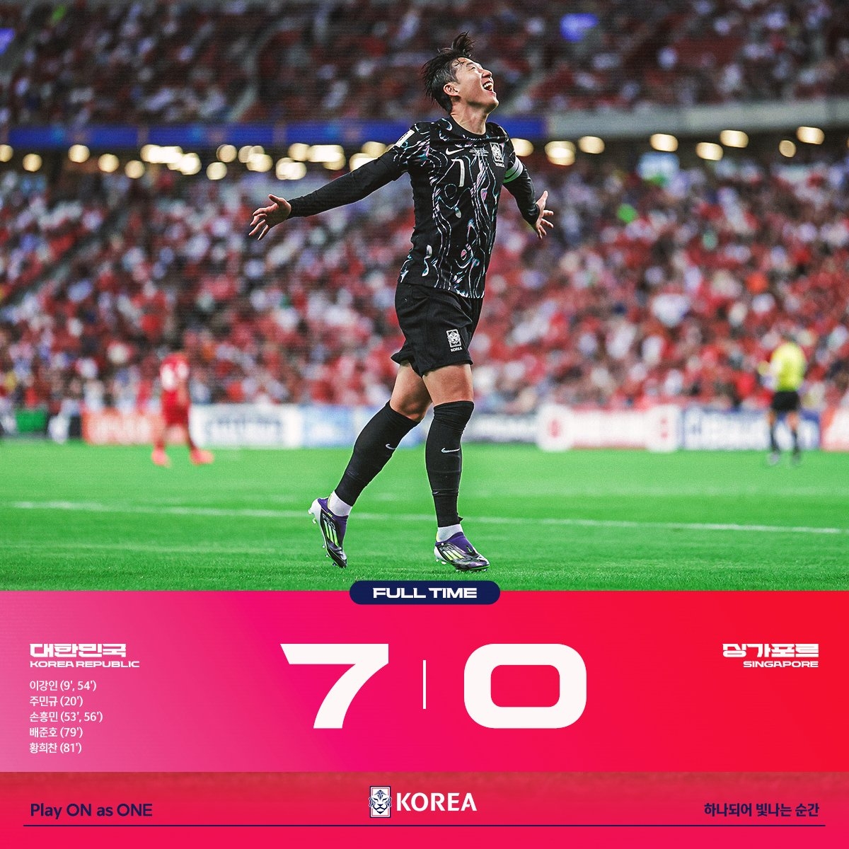 屠杀晋级!韩国7-0新加坡末轮将战国足,孙兴慜、李刚仁双响