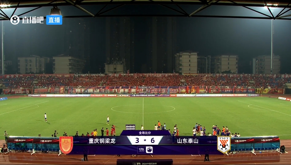6月22日讯 北京时间6月22日晚19时30分,2024赛季足协杯第4轮在铜梁龙体育场展开角逐,山东泰山客场挑战重庆铜梁龙。上半场廖力生轰超级世界波,下半场刘洋和刘世博先后失误送礼,泰山3分钟连丢2球,刘明仕和李镇全破门反超,卡扎伊什维利扳平,20岁小将向余望建功,谢文能再度追平,贾德松、德尔加多和阿卜杜肉苏力最后阶段连入3球。最终山东泰山6-3战胜重庆铜梁龙晋级16强,下一轮对阵对手将重新抽签。