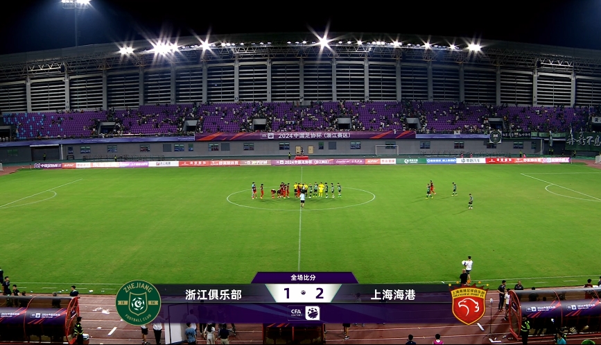 下半场补时9分钟。最终全场比赛结束,浙江1-2上海海港。