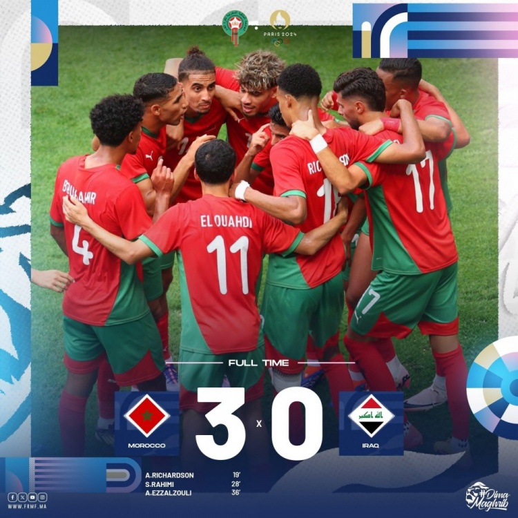 奥运男足-摩洛哥国奥3-0完胜伊拉克,头名晋级&阿什拉夫送助攻