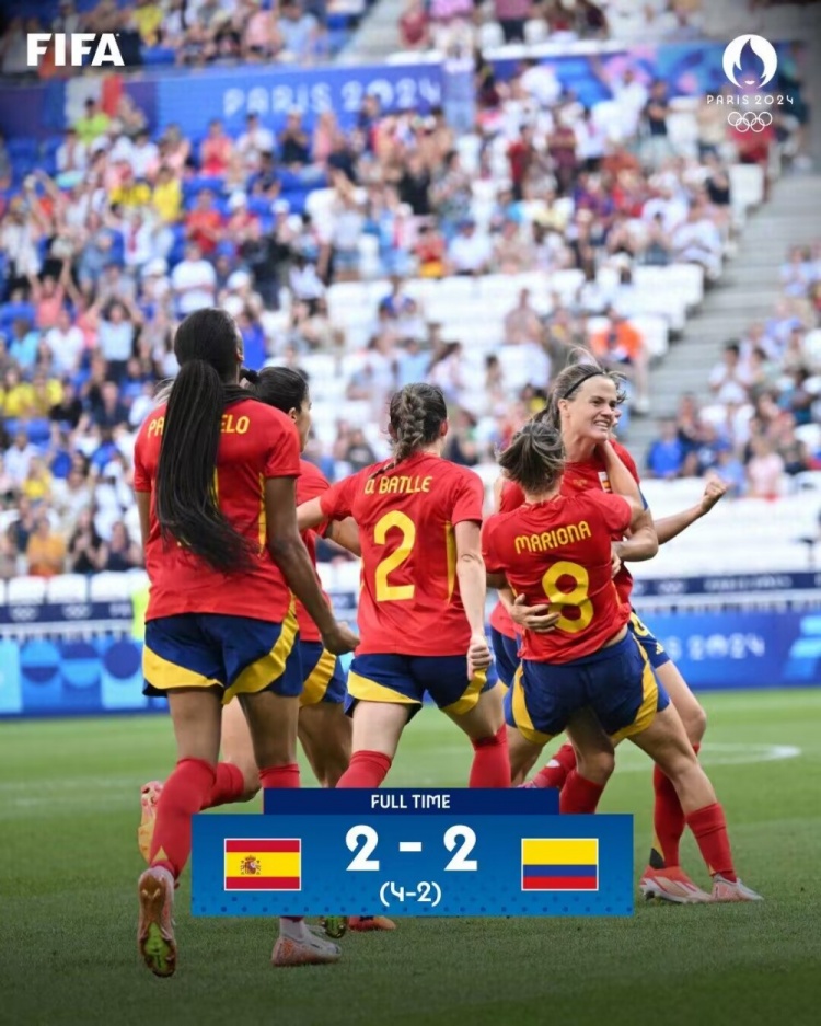绝平+逆转!西班牙女足2-2点球4-2哥伦比亚女足 晋级奥运半决赛