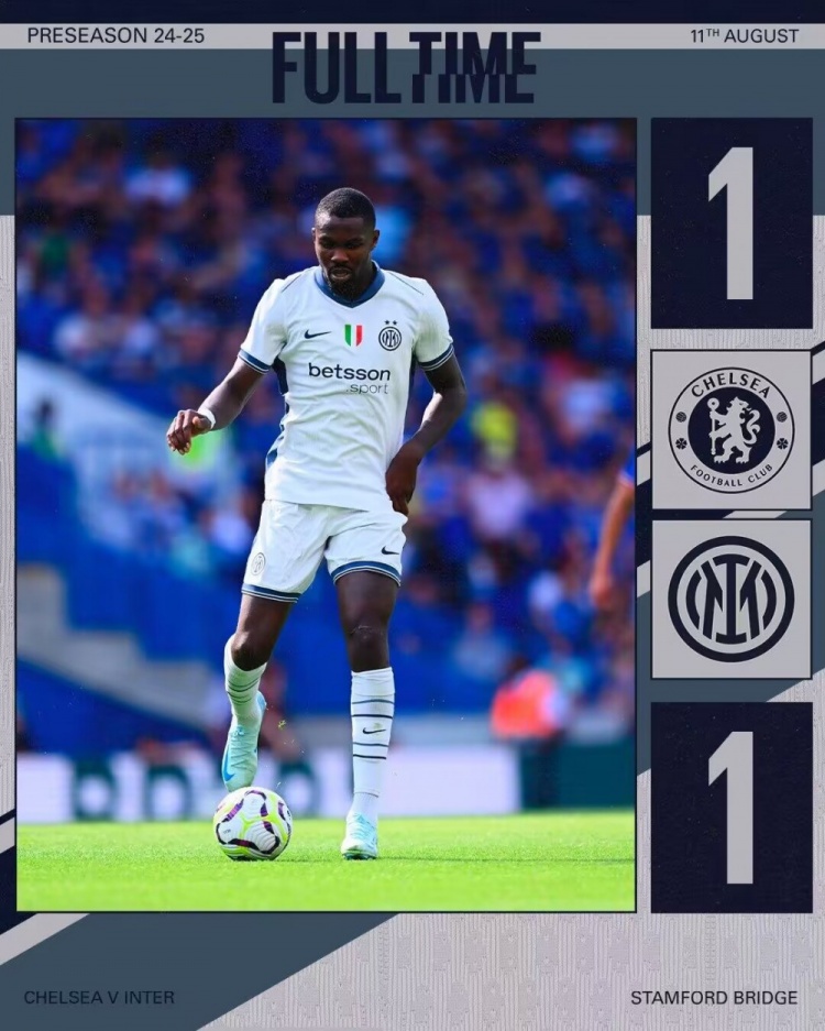 全场比赛结束,国际米兰1-1切尔西。