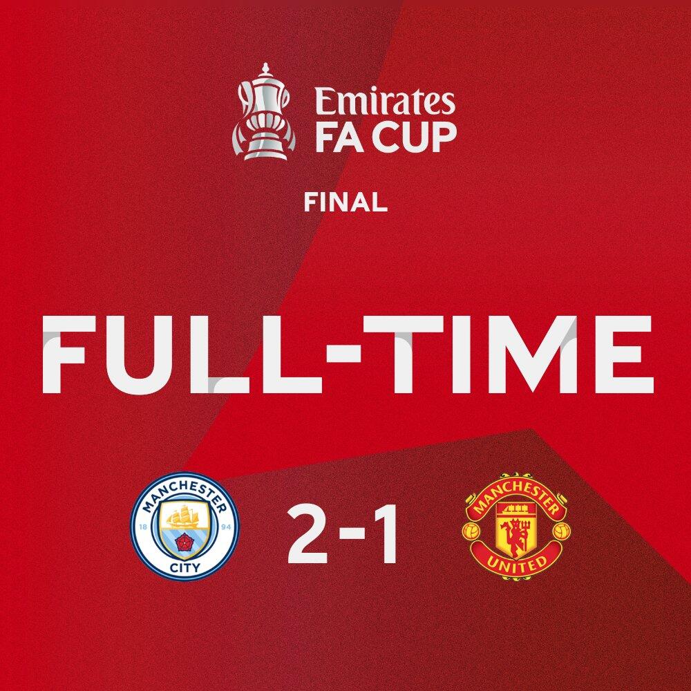 足总杯决赛-曼城2-1力克曼联夺赛季第二冠 京多安远射双响制胜