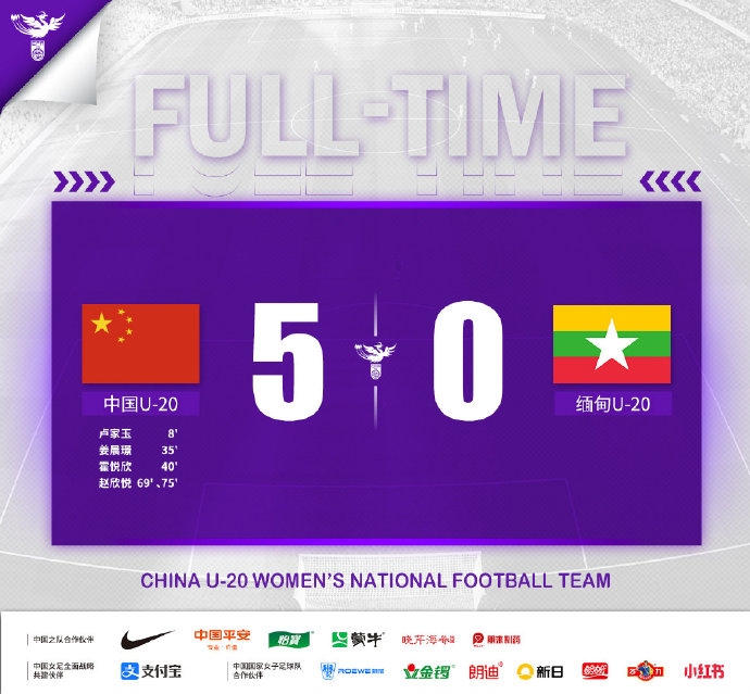 U20女足亚预赛-霍悦欣世界波赵欣悦替补双响 中国5-0缅甸
