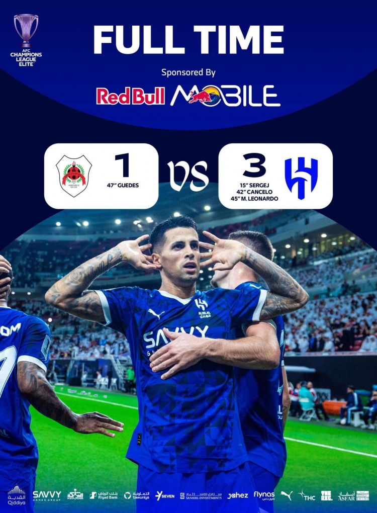 全场比赛结束,利雅得新月3-1赖扬。
