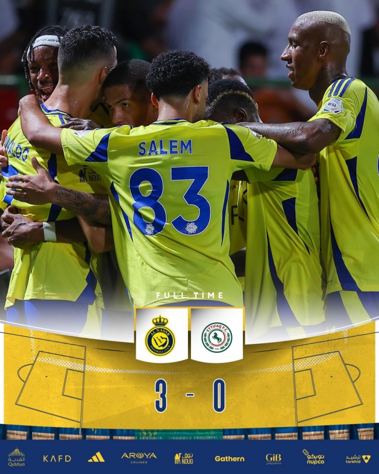 利雅得胜利首发:24-本托、2-哈纳姆、3-西马坎(77'4-法蒂尔)、27-拉波尔特、83-纳吉迪(57'12-纳瓦夫)、17-哈巴利、25-奥塔维奥(77'6-穆赫塔尔)、94-塔利斯卡(77'16-马兰)、20-安吉洛(60'29-加里卜)、10-马内、7-C罗