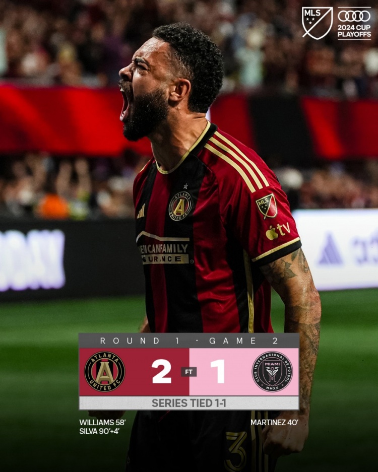 第94分钟遭绝杀!迈阿密1-2亚特兰大联 季后赛大比分1-1第3场决胜