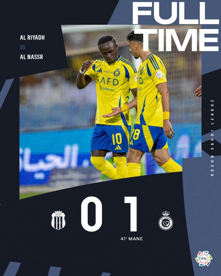沙特联-利雅得胜利1-0体育止两连平&10轮不败 马内破门+单刀被扑