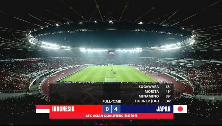 全场比赛结束,日本队4-0击败印尼队。