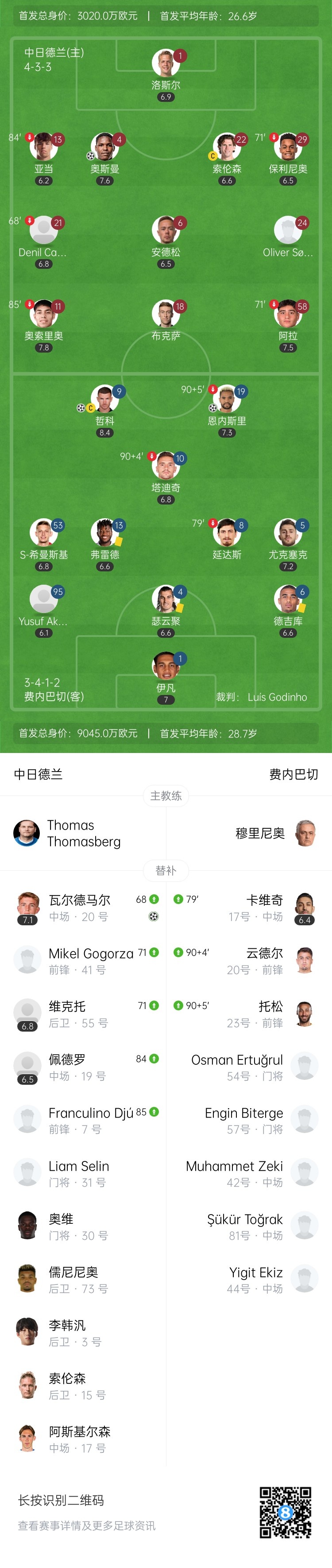 第90+3分钟,费内巴切后场回传门将失误送礼,但中日德兰没能把握住绝佳的绝杀机会↓