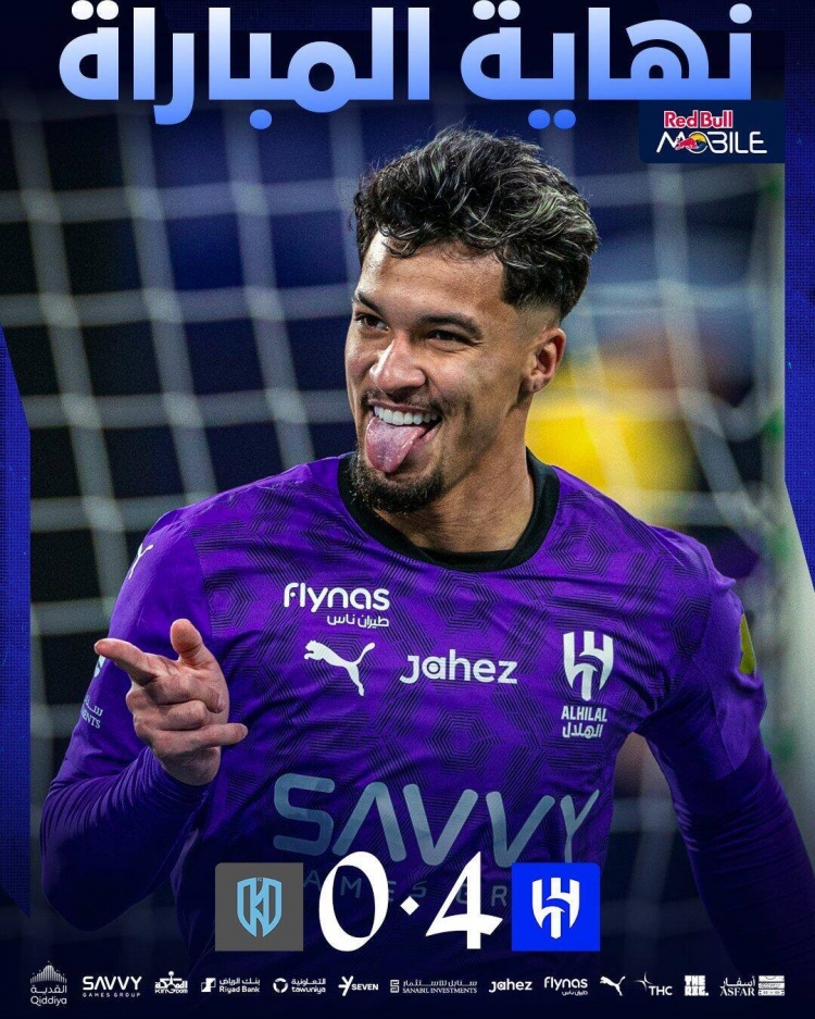 第45+2分钟,坦巴克蒂顶出弹地球越过门将,马科斯-莱昂纳多后点轻松将球送进空门!3-0!利雅得新月继续扩大领先优势!↓