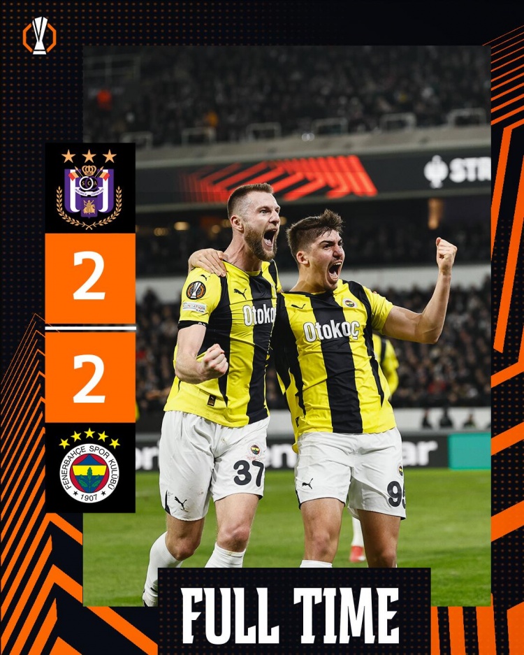 2月21日讯 北京时间4:00,欧联杯淘汰赛附加赛次回合,费内巴切客场挑战安德莱赫特,首回合费内巴切3-0完胜!本场比赛在乐透公园球场打响!上半场,安德莱赫特后场送礼,哲科断球助攻恩内斯里破门;随后比赛因球迷冲突一度中断20分钟;恢复进行后,费内巴切门将同样送礼!巴斯克斯扳回一球。下半场,小阿扎尔助攻巴斯克斯完成双响;什克助攻阿克切克破门!最终,费内巴切2-2战平安德莱赫特,总比分5-2晋级欧联杯16强!