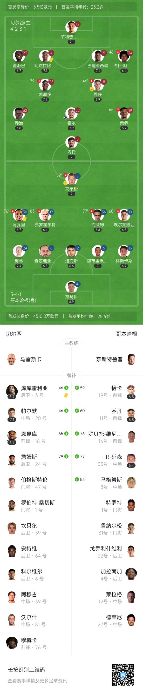 下半场补时5分钟,切尔西1-0哥本哈根。