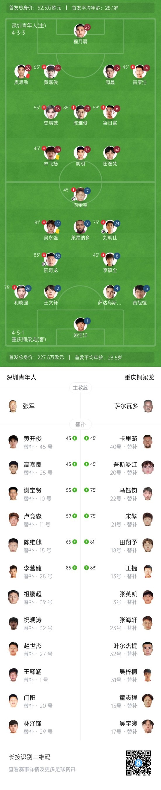 双方首发以及换人信息: