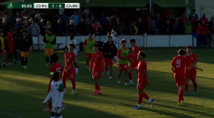 全场比赛结束,U16中国男足1-0战胜喀麦隆U16。
