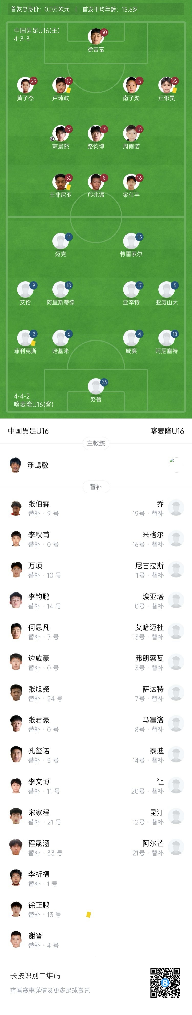 蒙太古杯-U16国足1-0喀麦隆取首胜+两轮不败 萧晨熙任意球贴地斩