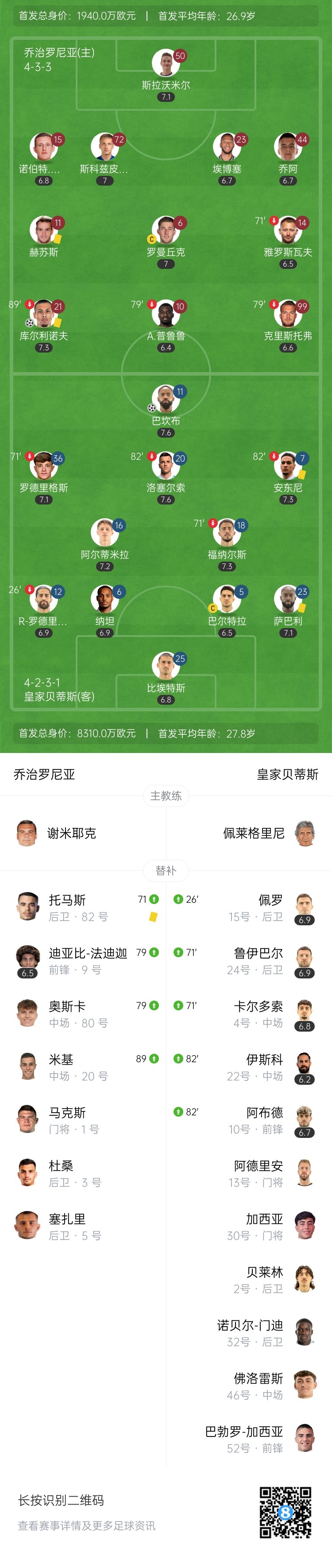 第81分钟,贝蒂斯禁区内解围不干净,库尔利诺夫断球右脚破门!乔治罗尼亚1-1,总比分1-3贝蒂斯↓