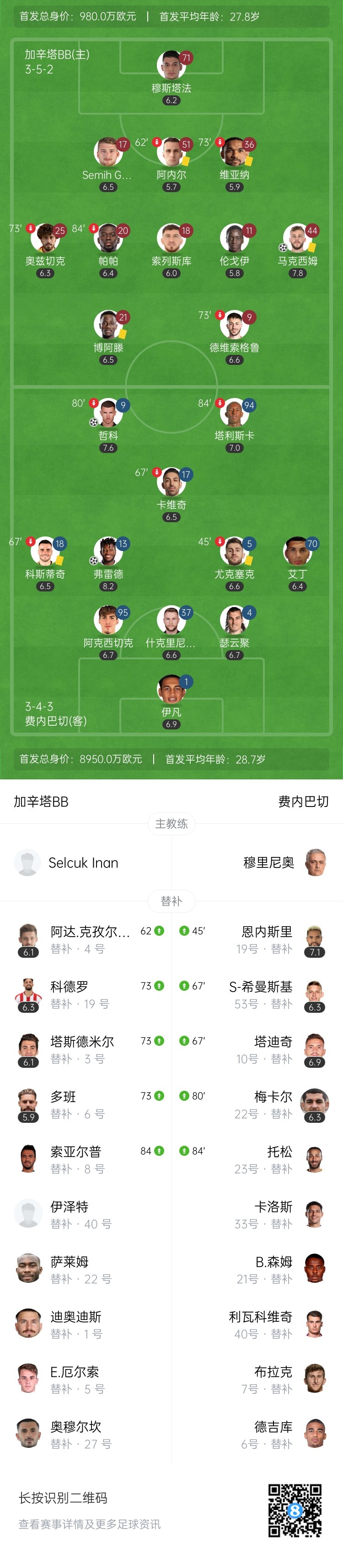 上半场伤停补时2分钟,半场结束,费内巴切暂0-1加辛塔BB。