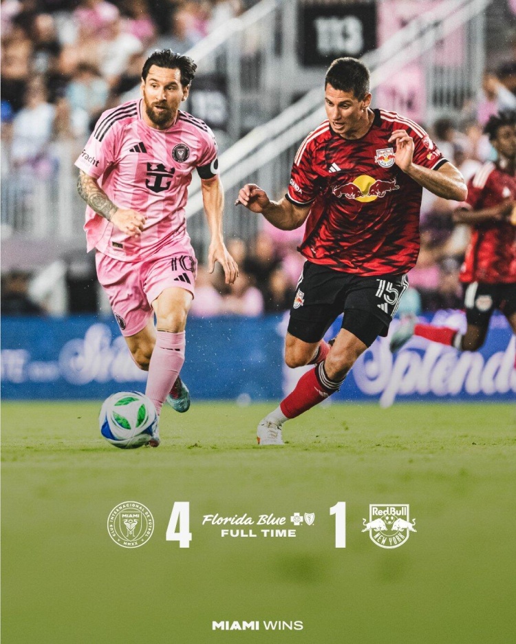 全场比赛结束,迈阿密国际主场4-1战胜纽约红牛。