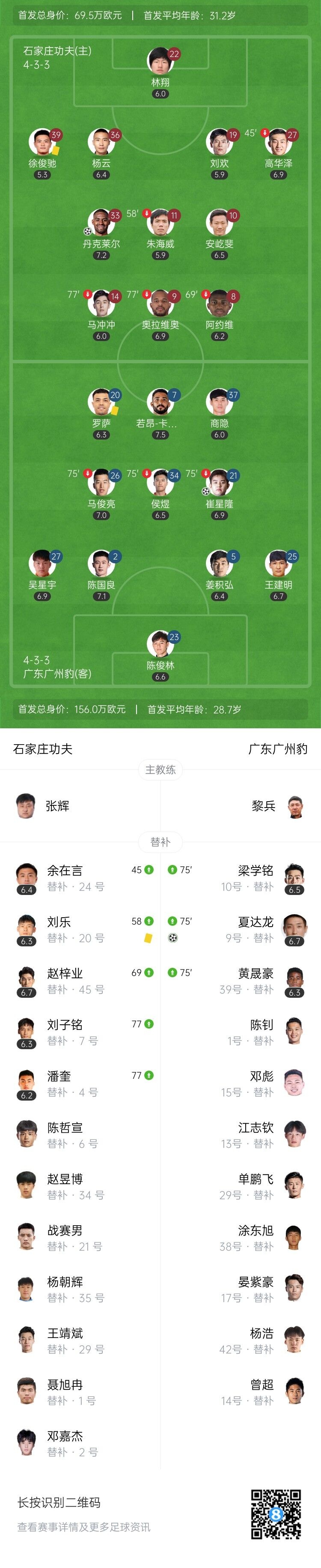 中甲-广州豹2-1破石家庄功夫联赛金身 夏达龙&18岁小将崔星隆破门
