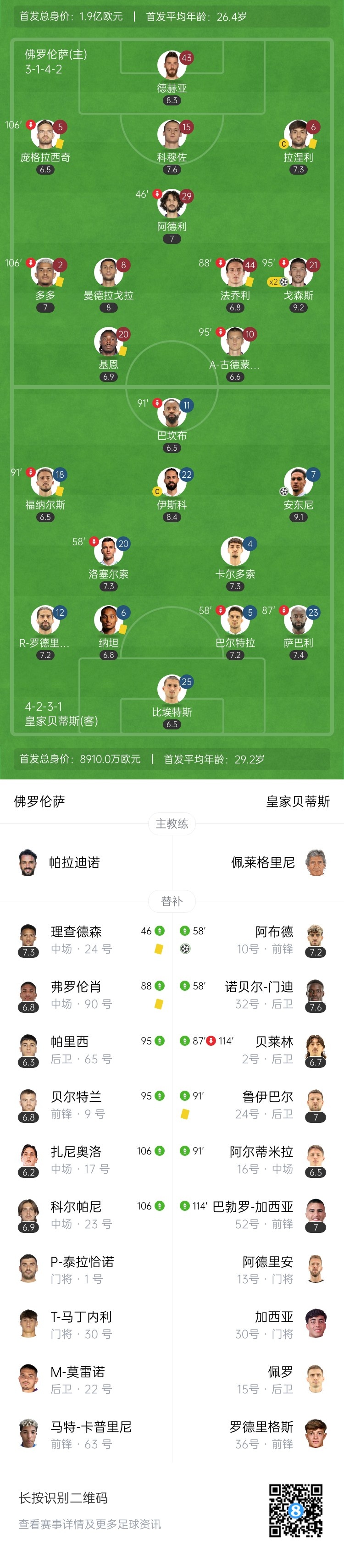第34分钟,佛罗伦萨右侧角球机会,曼德拉戈拉开出,戈森斯禁区中头球破门!佛罗伦萨1-1贝蒂斯,总比分2-3↓