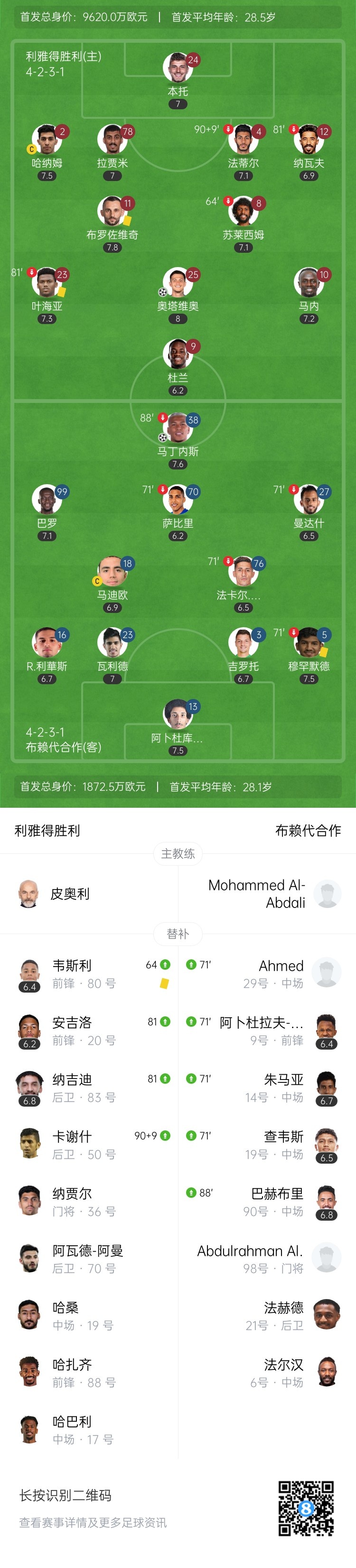 第51分钟,利雅得胜利打破僵局!叶海亚开出战术角球,苏莱西姆传中,前点奥塔维奥头球破门!利雅得胜利1-0领先布赖代合作↓