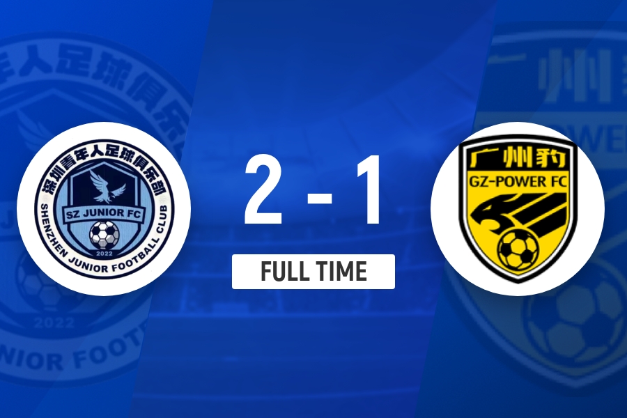 全场比赛结束,广州豹1-2不敌深圳青年人。