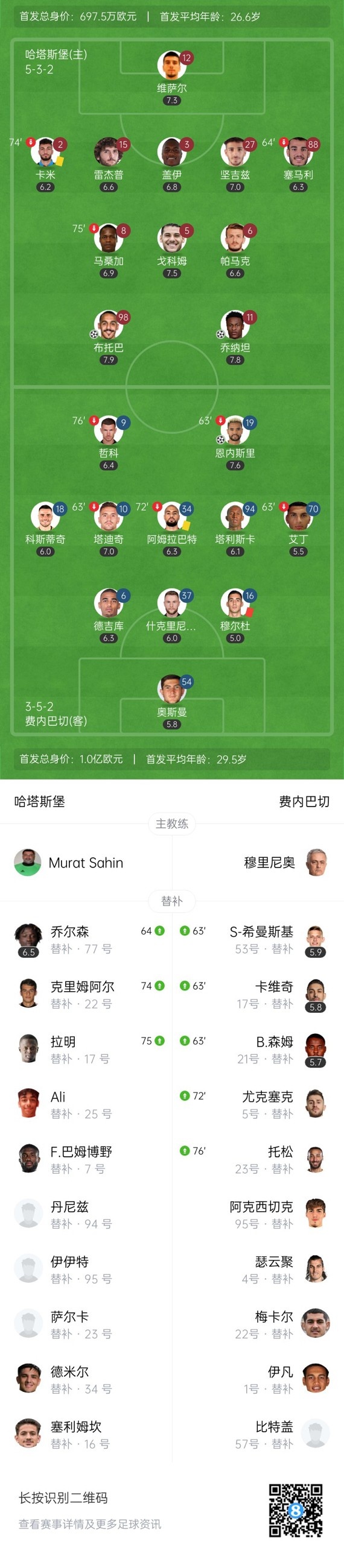 下半场补时4分钟,哈塔斯堡4-2费内巴切。