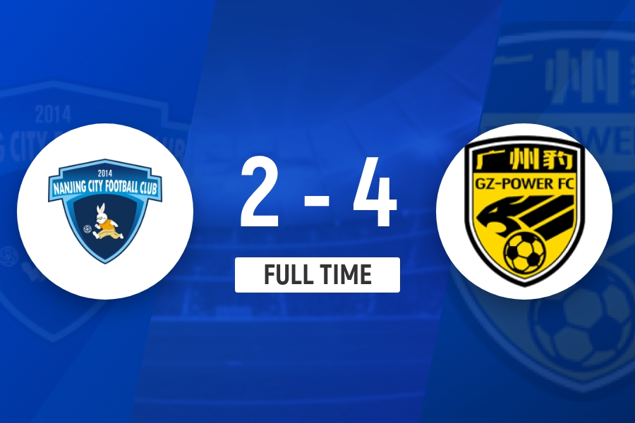 中甲-广州豹补时连进两球4-2逆转南京 吉翔4分钟连吃两黄被罚下