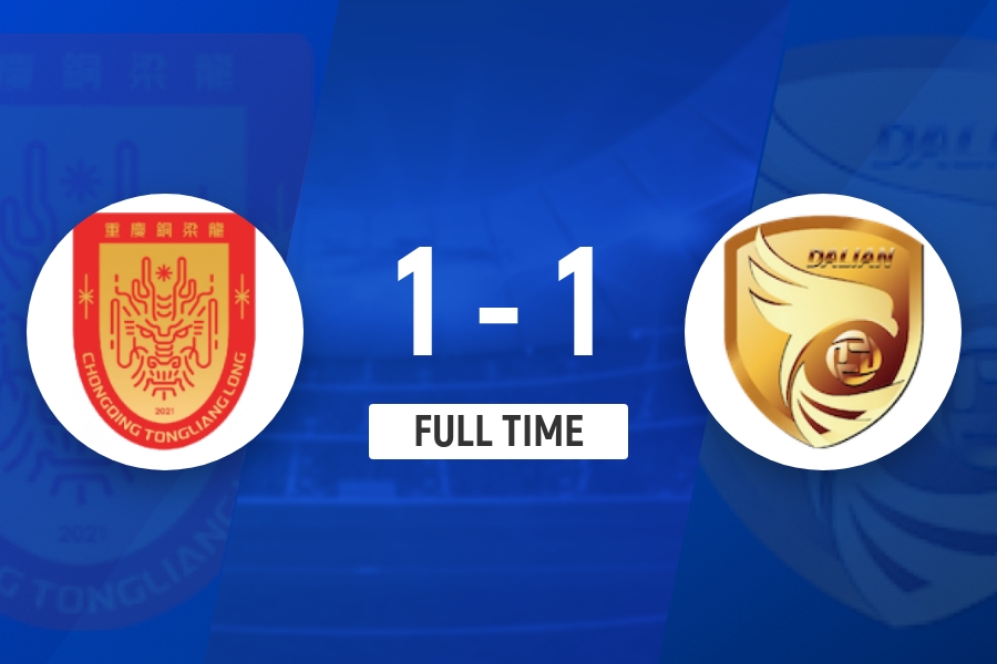下半场补时7分钟,重庆铜梁龙1-1大连鲲城。