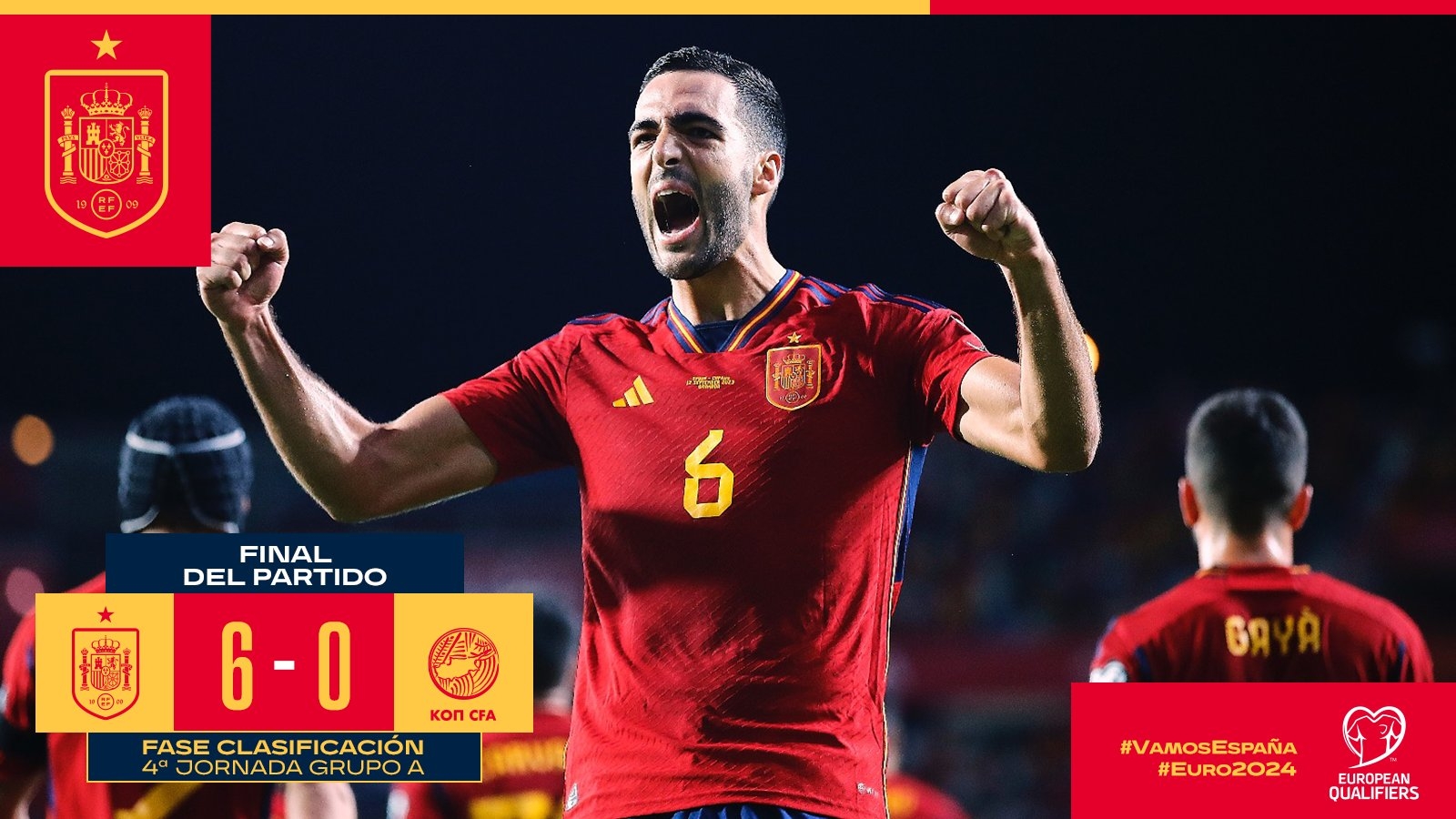 第18分钟,加亚中场送出挑传,左路尼科-威廉姆斯下底传中,加维跟进前点推射破门,西班牙1-0塞浦路斯。↓